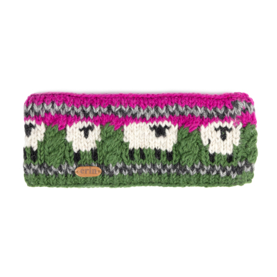 Knitted Sheep Headband with Aran Cable Band in Pink and Dark Green PK1900