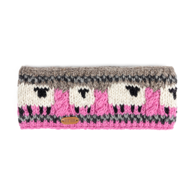 Knitted Sheep Headband with Aran Cable Band Pink and Grey PK1900