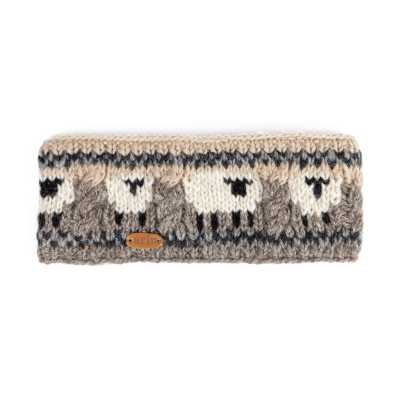 Knitted Sheep Headband with Aran Cable Band in Grey and Biege PK1900
