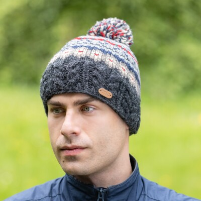 PK2004 Aran Cable Bobble Pullon Hat Charcoal/Grey