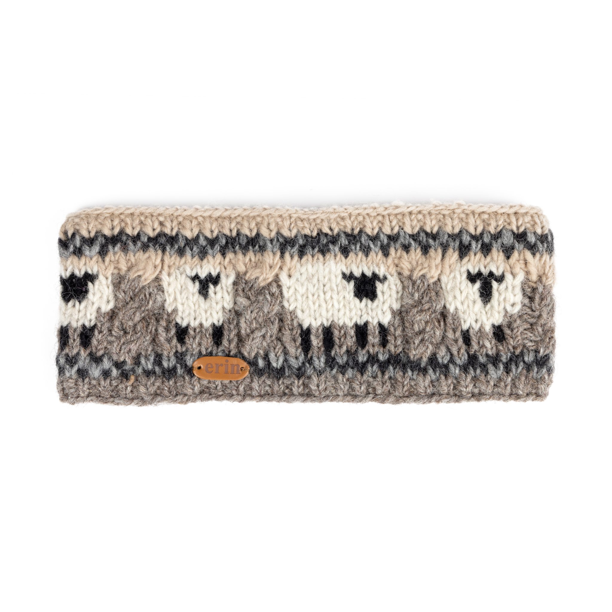 Knitted Sheep Headband with Aran Cable Band in Grey and Biege PK1900 - Image 1